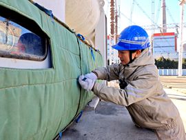 全員加班為變電站設(shè)備做防凍保溫,為網(wǎng)控變電站的關(guān)鍵開關(guān)設(shè)備“穿”上定制保溫棉衣;另一路由經(jīng)驗豐富的老員工牽頭,對空壓機(jī)管路及附屬設(shè)施加裝保溫層,”班長趙詩宇一邊指導(dǎo)年輕員工郝巖包裹開關(guān)接線口。